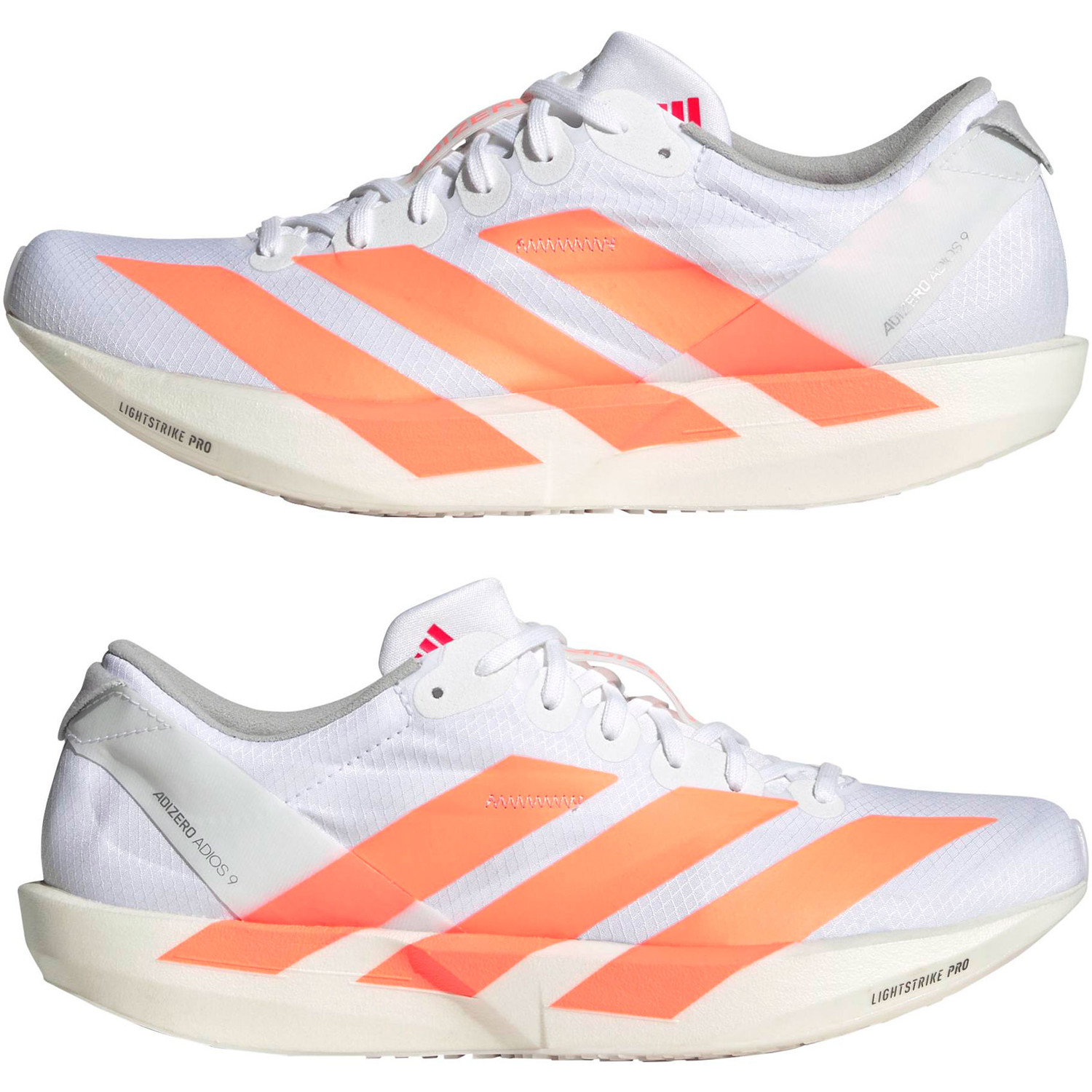 Mit dem adidas Adizero Adios 9 für Damen kannst du an den Wettkampftagen das Tempo erhöhen. Dieser leichte Wettkampfschuh ist dafür gemacht, persönliche Rekorde zu brechen, aber auch bei schnellen Trainingseinheiten enttäuscht dieser Schuh nicht.
