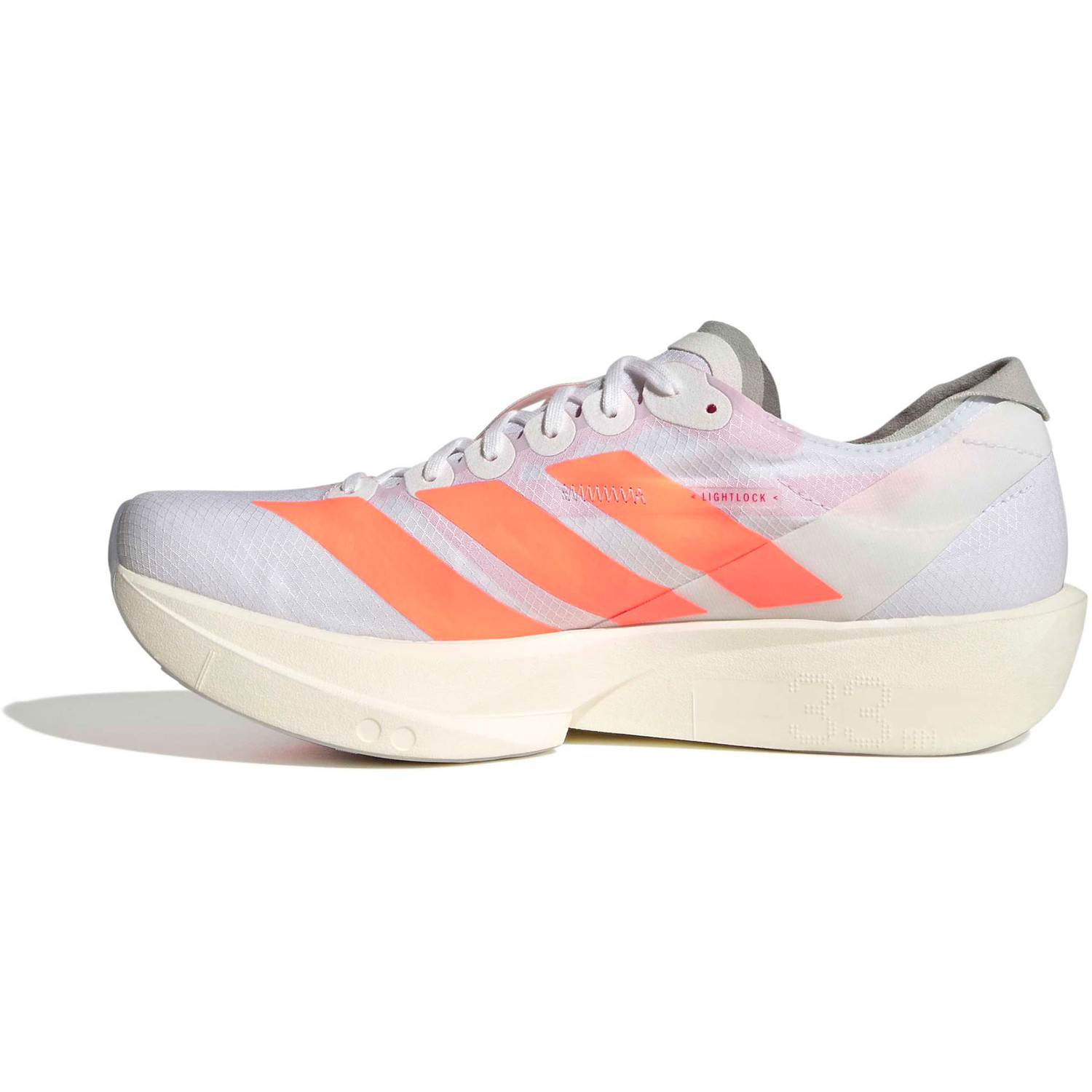 Das Lightlock-Obermaterial wurde speziell entwickelt, um den Fuß bei hohen Geschwindigkeiten stabil zu halten, ohne einzuengen. Die atmungsaktive Mesh-Struktur sorgt für Ventilation und komfortablen Halt, auch bei günstigen Kurven oder Tempowechseln. Die Lighttraxion-Außensohle ist strategisch platziert, um Gewicht zu sparen und den Grip zu erhalten. Im Vorfußbereich sorgt Continental™ Rubber für zusätzliche Traktion beim Abstoßen - entscheidend bei schnellen Rennen auf befestigten Oberflächen.