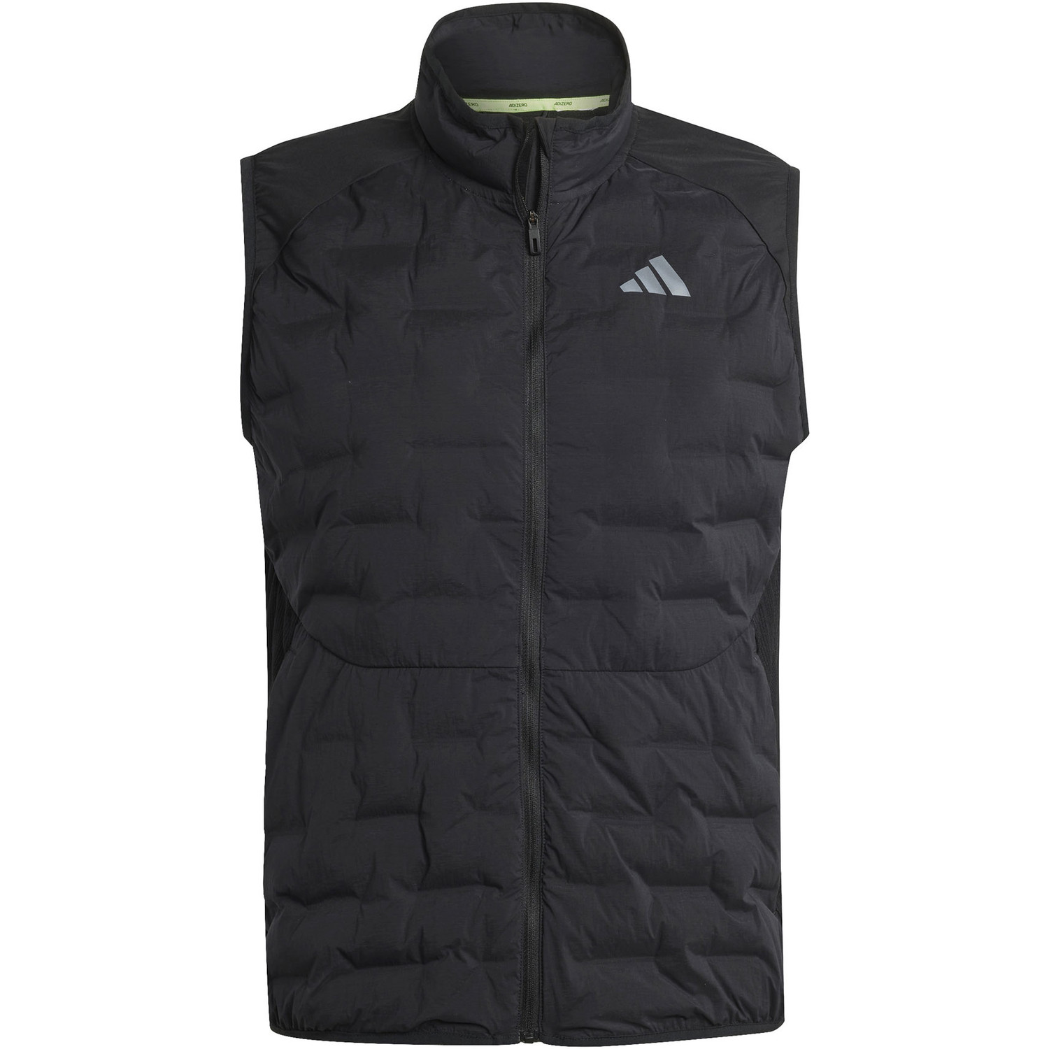 Die adidas Adizero Vest für Herren verfügt über eine wasserabweisende Beschichtung. Die Belüftung auf der Rückseite verhindert, dass du während deines Laufs überhitzt. Das Modell ist rundum reflektierend und verfügt über eine Reißverschlusstasche auf der Brust.