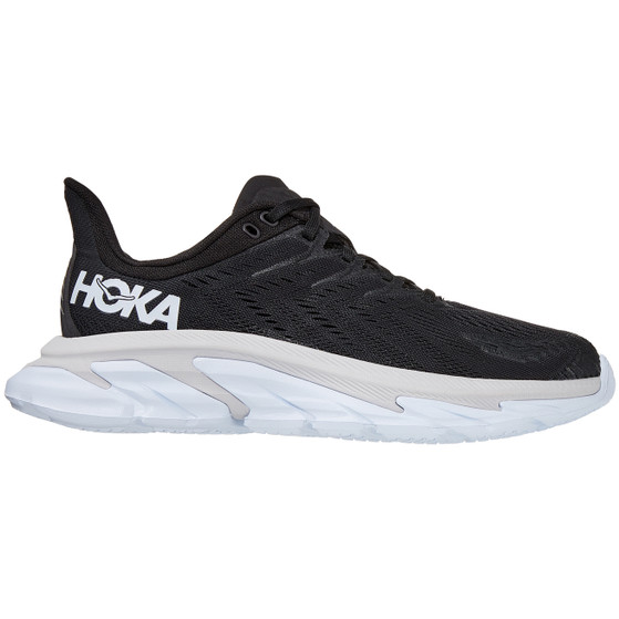 Der HOKA ONE ONE Clifton Edge ist ein neutraler Laufschuh. Das Modell hat ein höher gezogenes Fersenteil, der als Zuglasche für einen leichten Einstieg dient und verhindert, dass der Laufschuh an der Achillessehne scheuert.