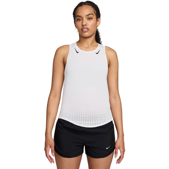 Mach dich bereit für blitzschnelle Zeiten mit dem Nike Dri-FIT AeroSwift Singlet für Damen. Dieses Laufsinglet verfügt über die Dri-FIT-Technologie mit feuchtigkeitsableitenden Eigenschaften, die dich während deines Laufs herrlich frisch und trocken hält.