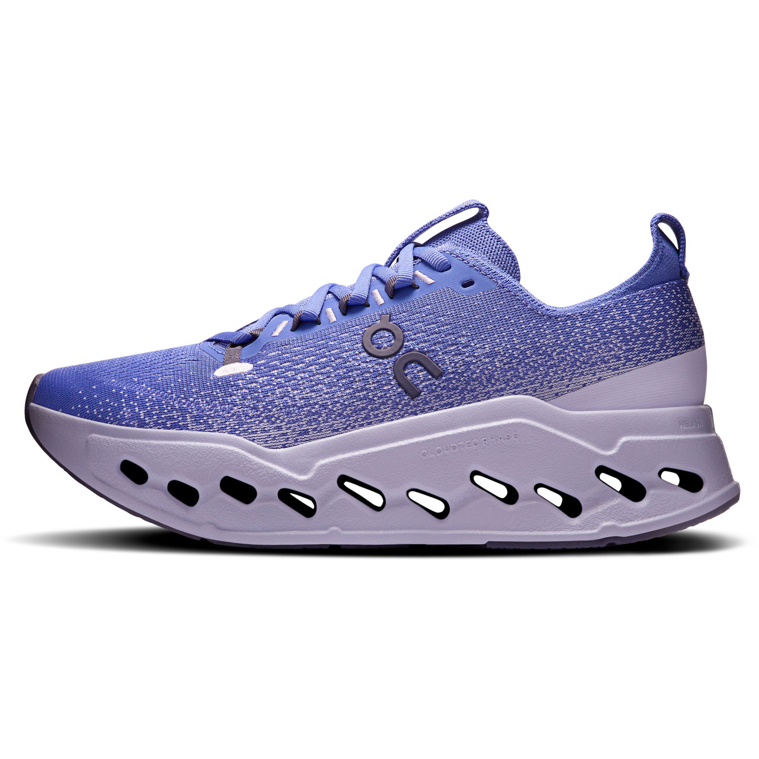 Das technische Mesh-Obermaterial ist leicht und atmungsaktiv, mit einer aktualisierten Zungenkonstruktion und gestrickten "Flügeln" für besseren Halt. So bleibt der Schuh auch bei längeren Läufen sicher. Der flache Strickkragen und das neue Schnürsystem sorgen für ein bequemes, sockenähnliches Gefühl am Fuß. Mit seiner ausgeschnittenen Zwischensohle und den kräftigen Farben ist der Cloudsurfer Max nicht nur funktional, sondern auch optisch auffällig. Das Design unterstreicht genau das, wofür dieser Schuh steht: maximaler Komfort, minimale Anstrengung.